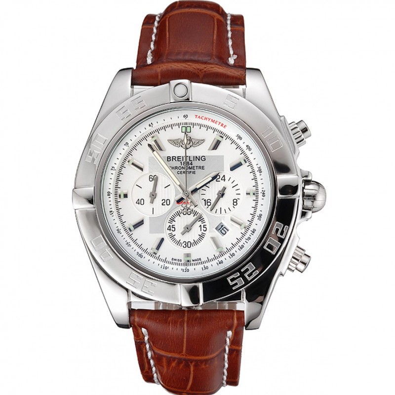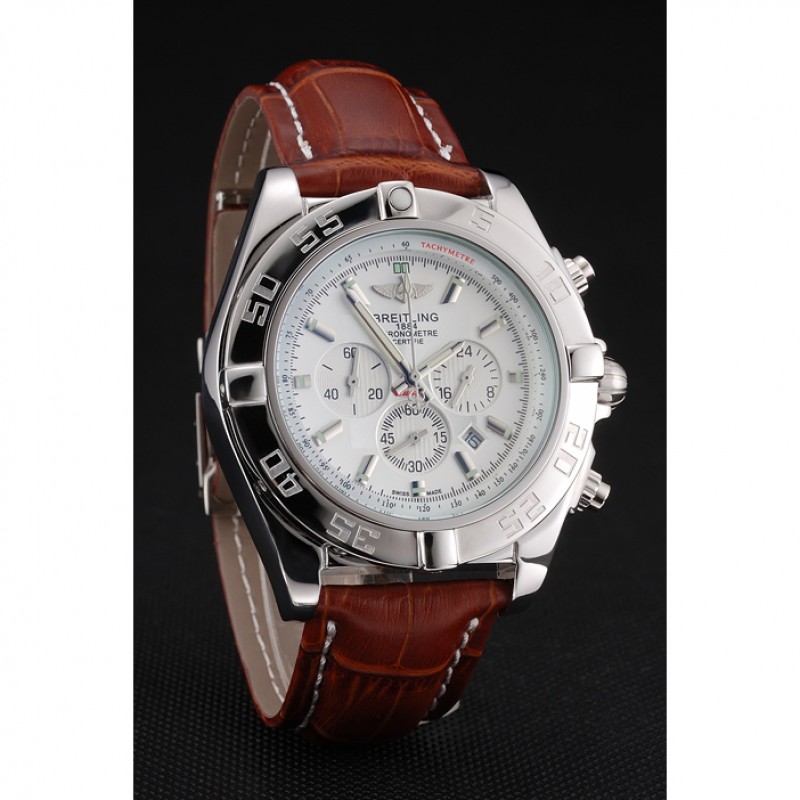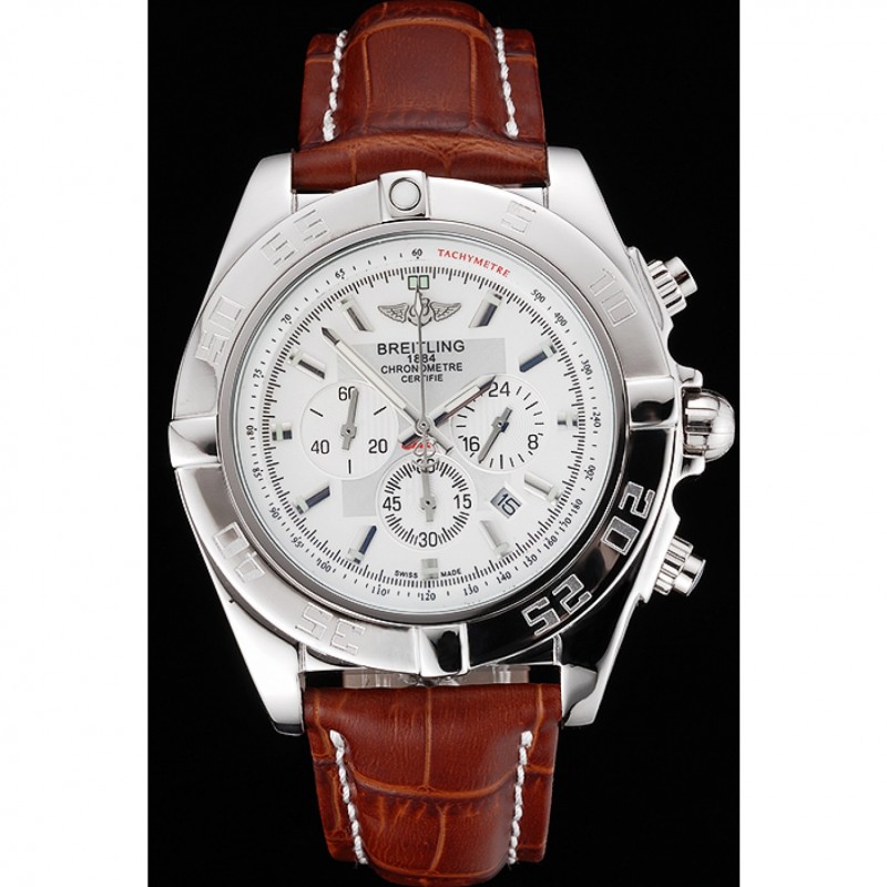 El diseño del Breitling replica no solo es estéticamente atractivo, sino también funcional. Su bisel redondo de acero inoxidable incluye minutos marcados en negrita para facilitar la lectura, mientras que la corona pulida, junto a dos coronas adicionales finamente trabajadas, aportan ese toque sofisticado y auténtico. La pulsera, elaborada en cuero marrón con la firma de Breitling estampada, se asegura con un cierre de hebilla tipo gancho, garantizando comodidad y seguridad para el usuario. Además, el cristal de zafiro protege la esfera blanca del reloj, aportando resistencia contra rayaduras y golpes.