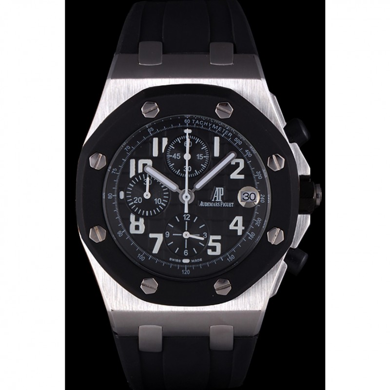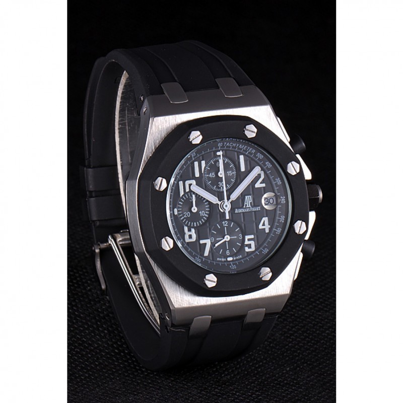 Con un movimiento de cuarzo japonés Miyota, este reloj garantiza precisión en la medición del tiempo. Su caja de acero inoxidable cepillado y su correa de caucho negro en relieve con el logo característico de Audemars Piguet, hacen de este reloj una pieza única y elegante, ideal para hombres con estilo.