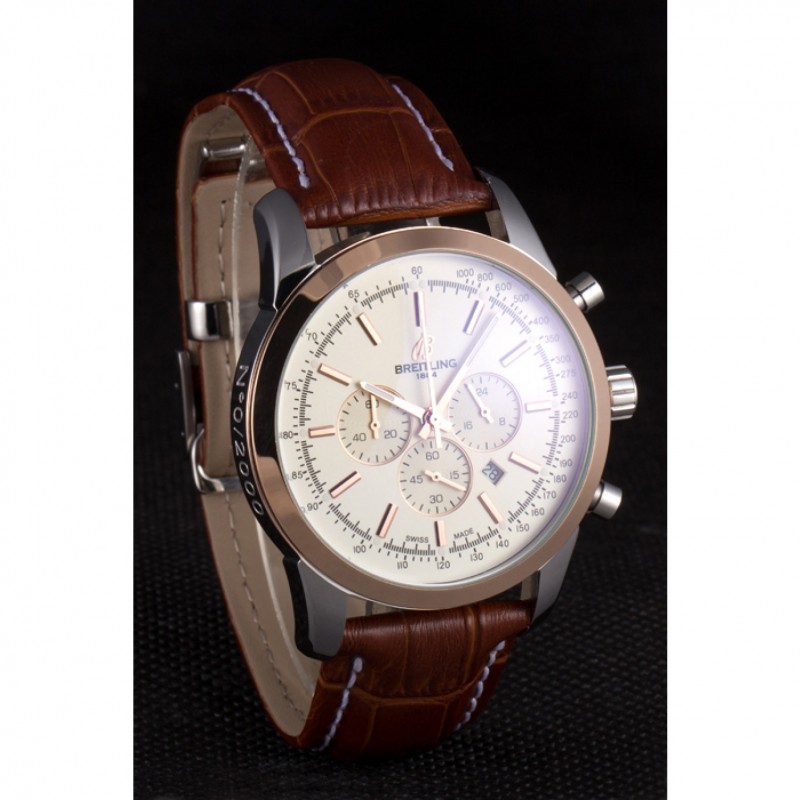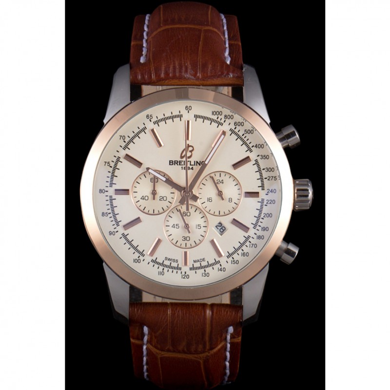 Breitling Transocean esfera blanca de cuero marrón claro correa de oro rosa Bisel