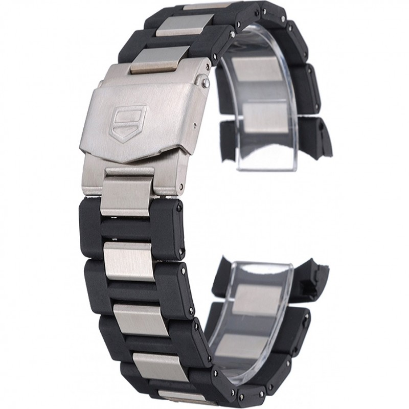Barato Tag Heuer acero inoxidable plateado y pulsera de goma Negro 622501