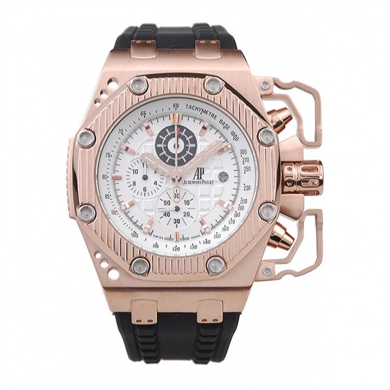 Suiza Audemars Piguet Royal Oak Offshore Survivor Esfera Blanca Caso de acero inoxidable Negro correa de caucho 622859