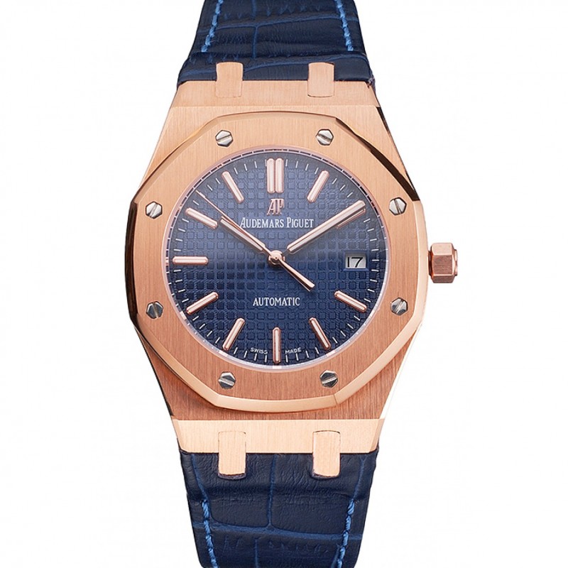 Suiza Audemars Piguet Royal Oak Azul Dial correa de cuero de la caja del oro azul