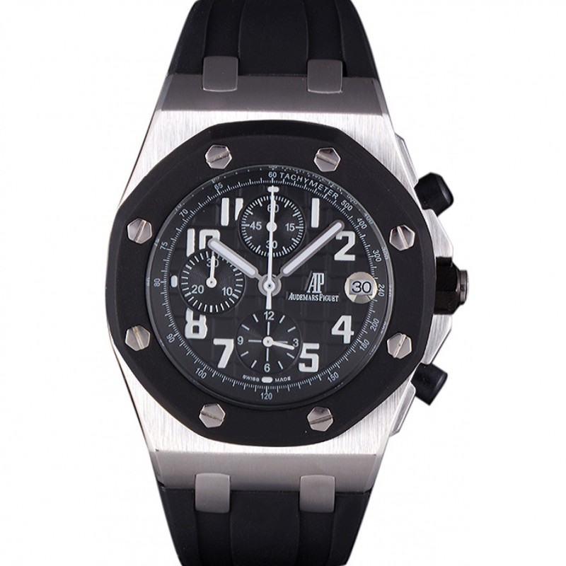 Suiza Audemars Piguet Royal Oak Offshore Negro Dial Diamond Bisel Caja de acero inoxidable y pulsera 622873