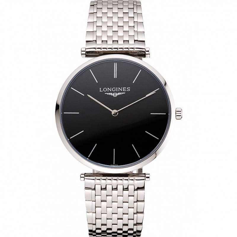 Suiza Longines Grande Classique Negro Dial Caja de acero inoxidable y pulsera