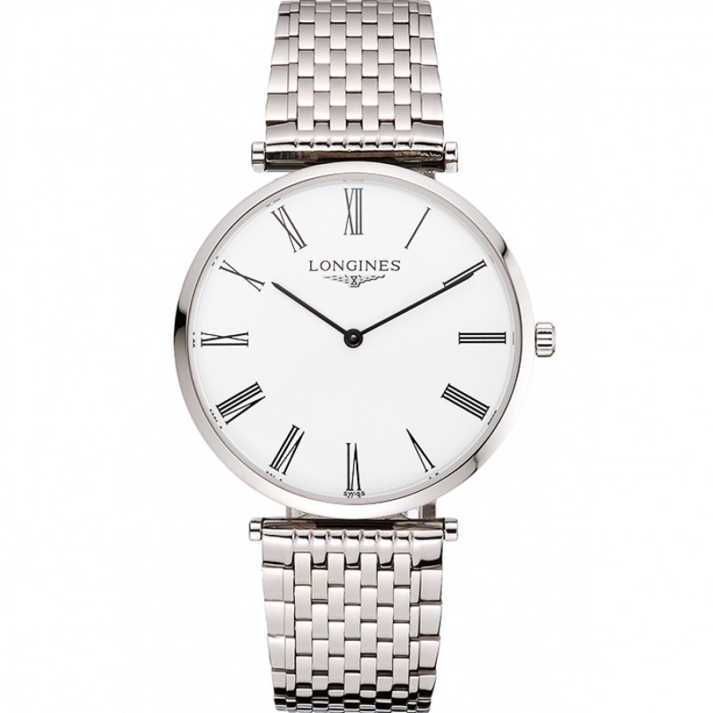 Mejor Réplicas Relojes Suiza Longines Grande Classique Esfera Blanca Caja de acero inoxidable de los números romanos y pulsera
