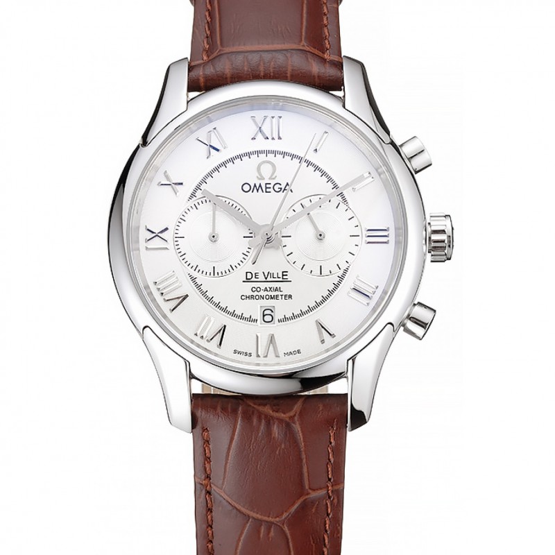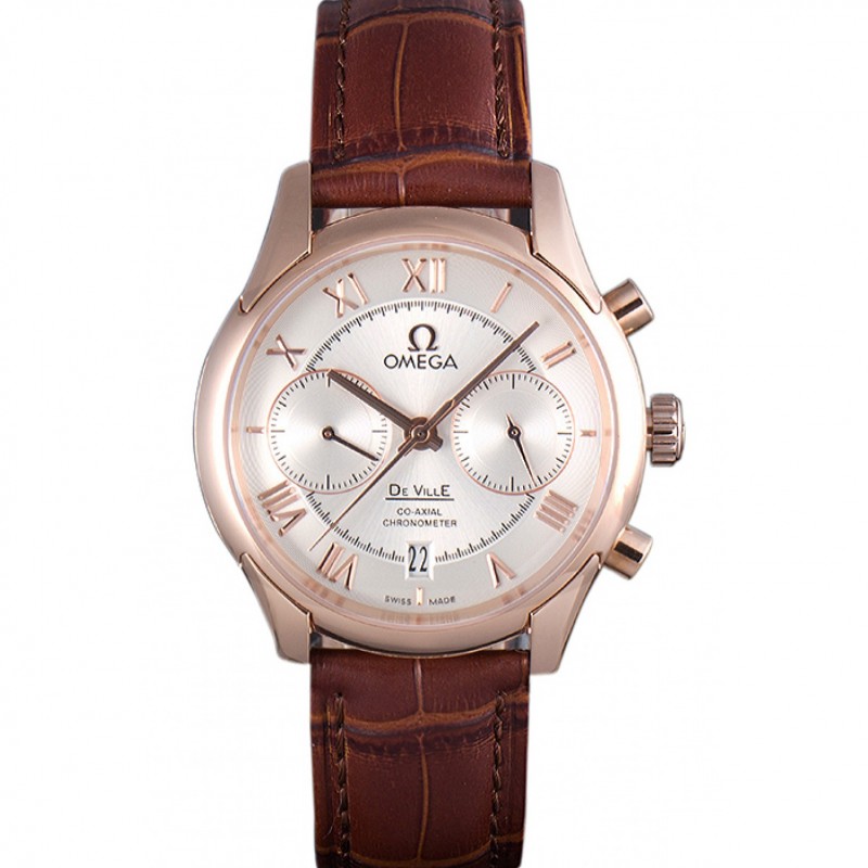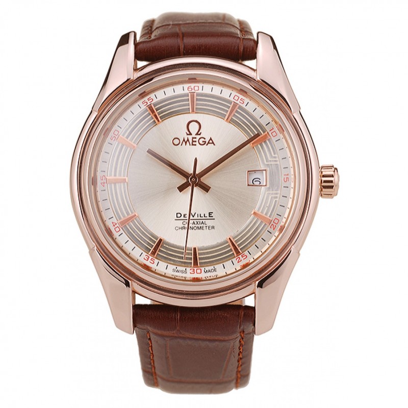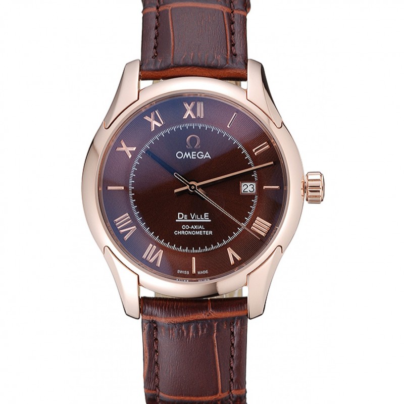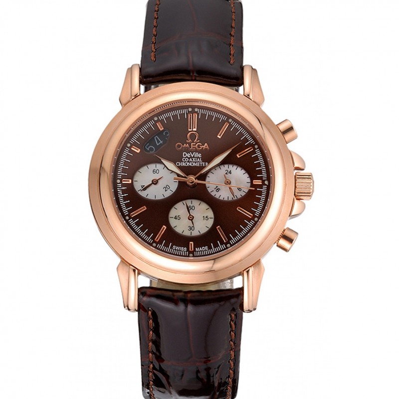 Mejor Omega DeVille Brown Dial Caja Oro Brown correa de cuero 622831