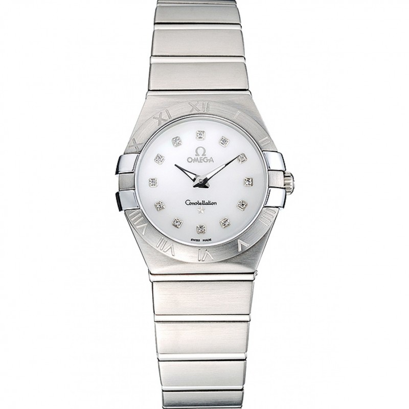 Swiss Lady Omega Constellation de cristal incrustada bisel de plata radial Dial 80291