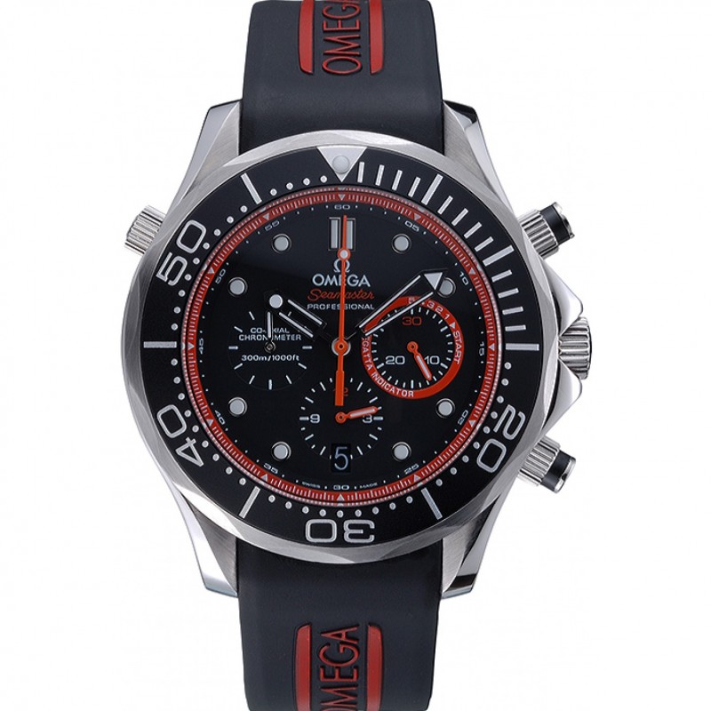 Suiza Omega Seamaster Cronógrafo Negro Dial Negro Bisel Caja de acero inoxidable y pulsera