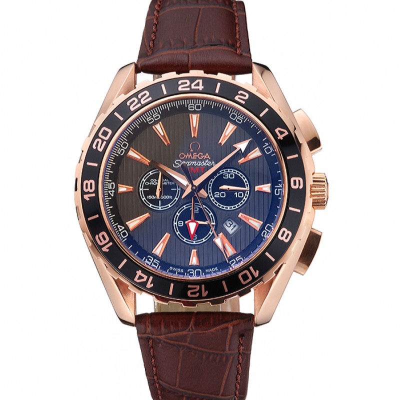 Alta calidad Réplicas Relojes Omega Seamaster Aqua Terra GMT Chrono-teca gris Dial de cuero marrón pulsera 622536