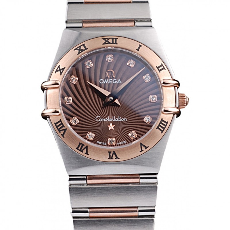 SS Omega joyería suiza constelación caja de oro rosa radial Emblema Dial Brown 98116