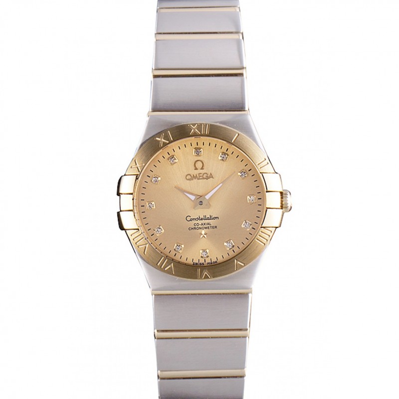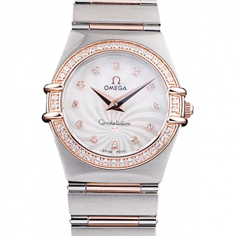 Omega Constellation de oro rosa diamante del bisel de dos bandas de tono 621487