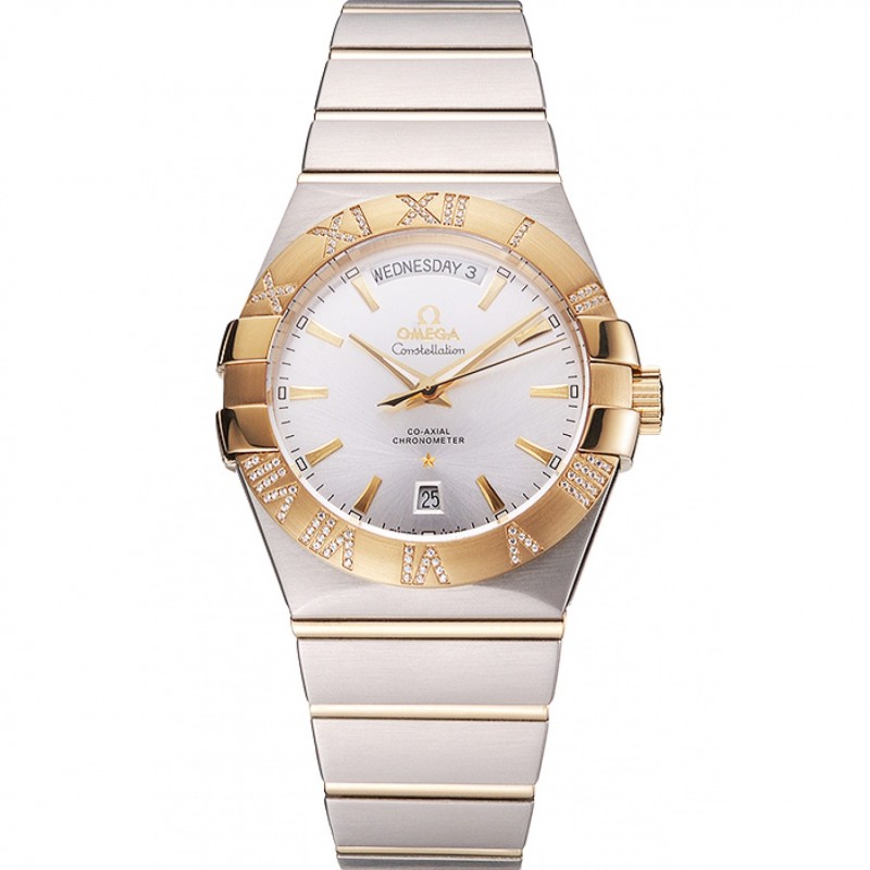 Suizo Omega Constellation Esfera Blanca, caja de acero inoxidable bisel de oro pulsera de dos tonos