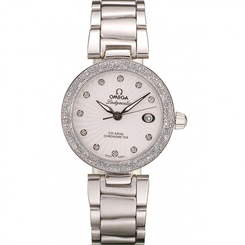 Omega DeVille Ladymatic iamond marcación plateó la bandeja blanca