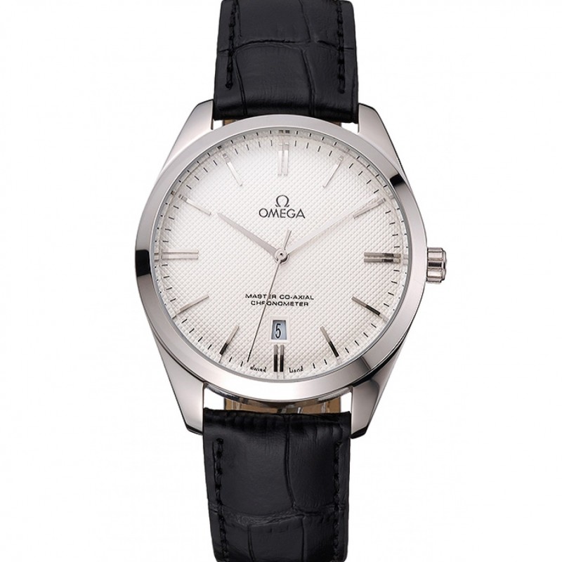 Omega Tresor Maestro Co-Axial Blanco Dial correa de cuero caja de acero inoxidable Negro
