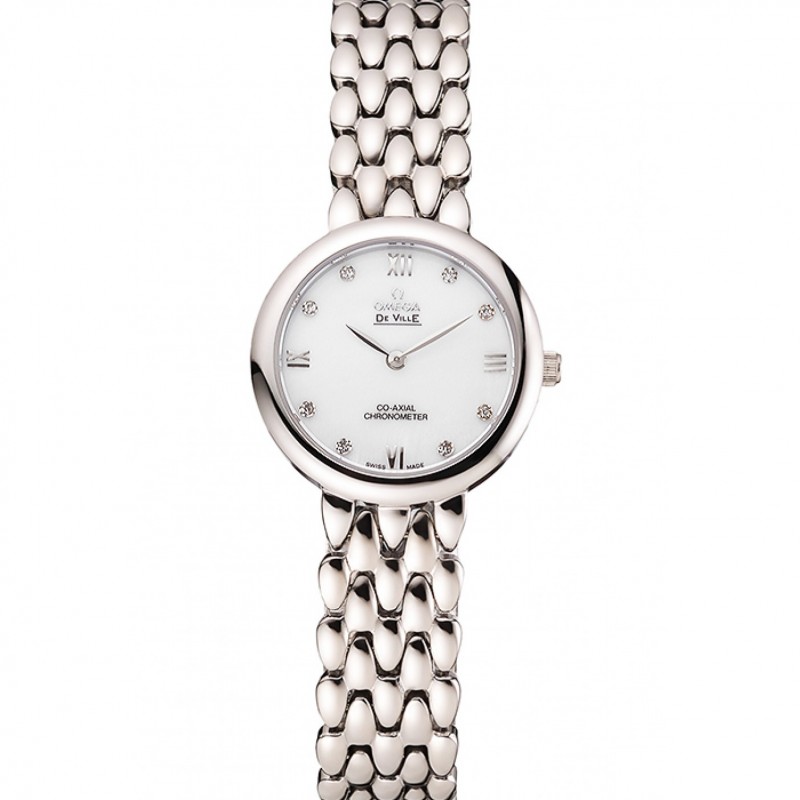 Omega De Ville Prestige No Fecha esfera blanca con diamantes caja de acero inoxidable y pulsera