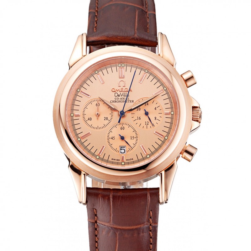 Omega De Ville cronógrafo Dial Brown caja del diamante de oro pulsera de cuero marrón 622457