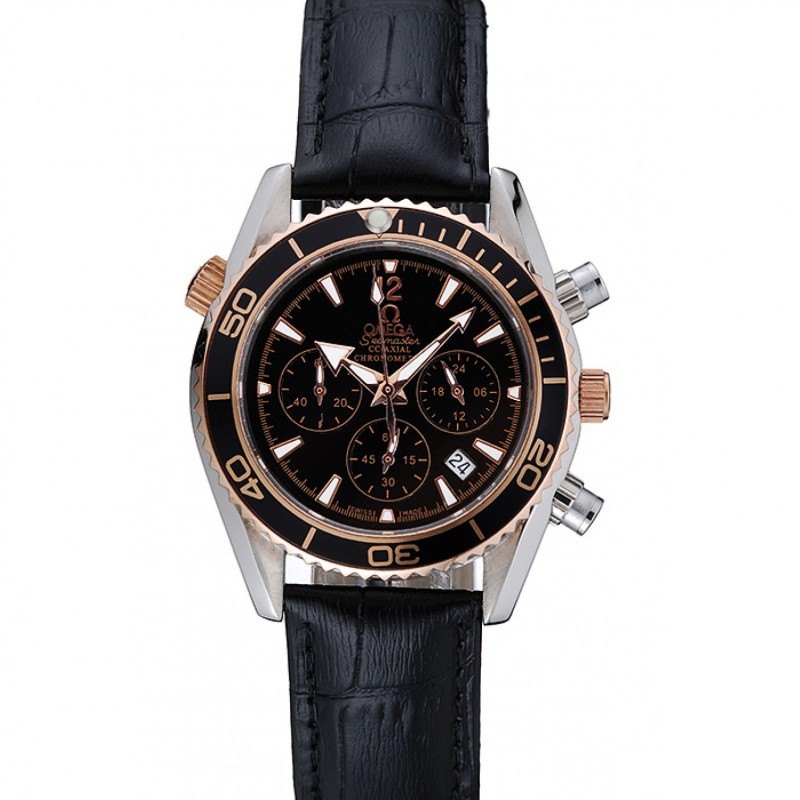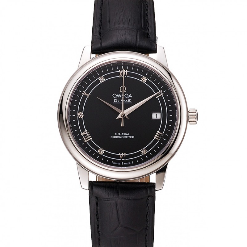 Omega De Ville Prestige Negro Dial correa de cuero caja de acero inoxidable Negro