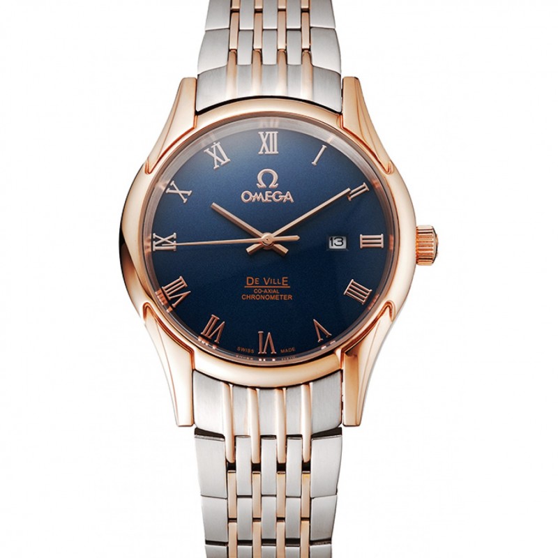 AAA Réplicas Relojes Omega De Ville Señoras Esfera Azul Caja de oro rosa brazalete de dos tonos 1453784
