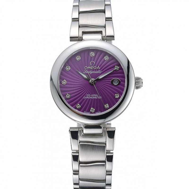 Omega Ladymatic púrpura Dial pulsera de acero inoxidable 622459