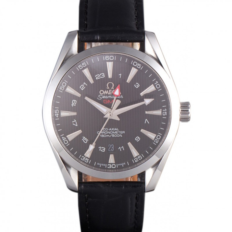 Omega Seamaster Dial Negro con correa de cuero Negro 621574