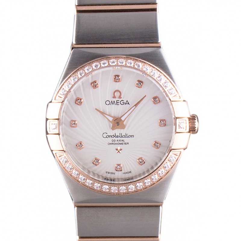 Omega Constellation de oro rosa diamante del bisel de dos bandas de tono 621487