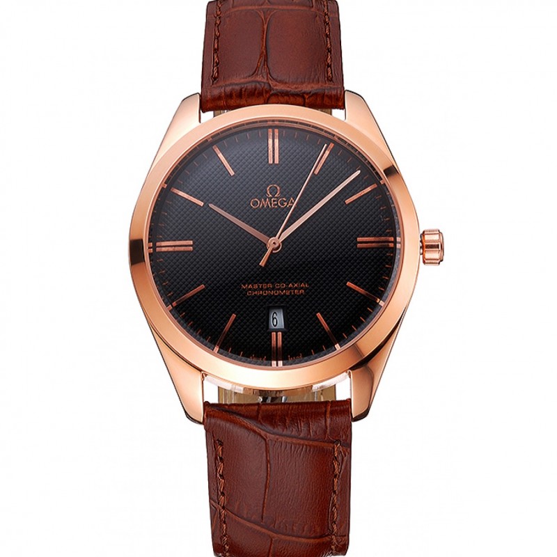 Omega Tresor Maestro Co-Axial Negro Dial correa de cuero de la caja de oro rosa Brown