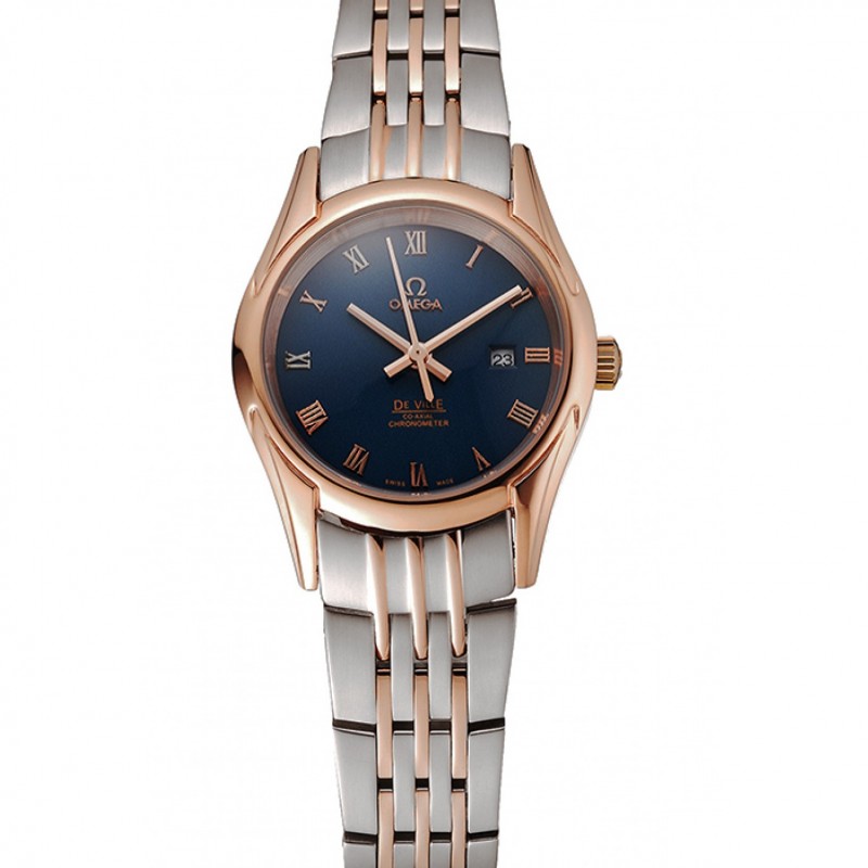 AAA Réplicas Relojes Omega De Ville Señoras Esfera Azul Caja de oro rosa brazalete de dos tonos 1453784