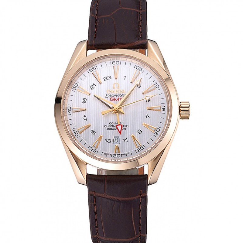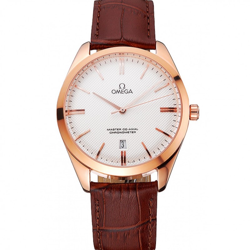 Mejor Omega Tresor Maestro Co-Axial Blanco Dial correa de cuero de la caja de oro rosa Brown