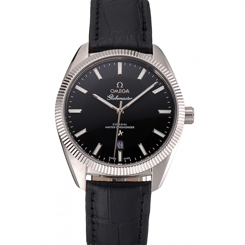 Omega Globemaster Negro Dial correa de cuero caja de acero inoxidable Negro