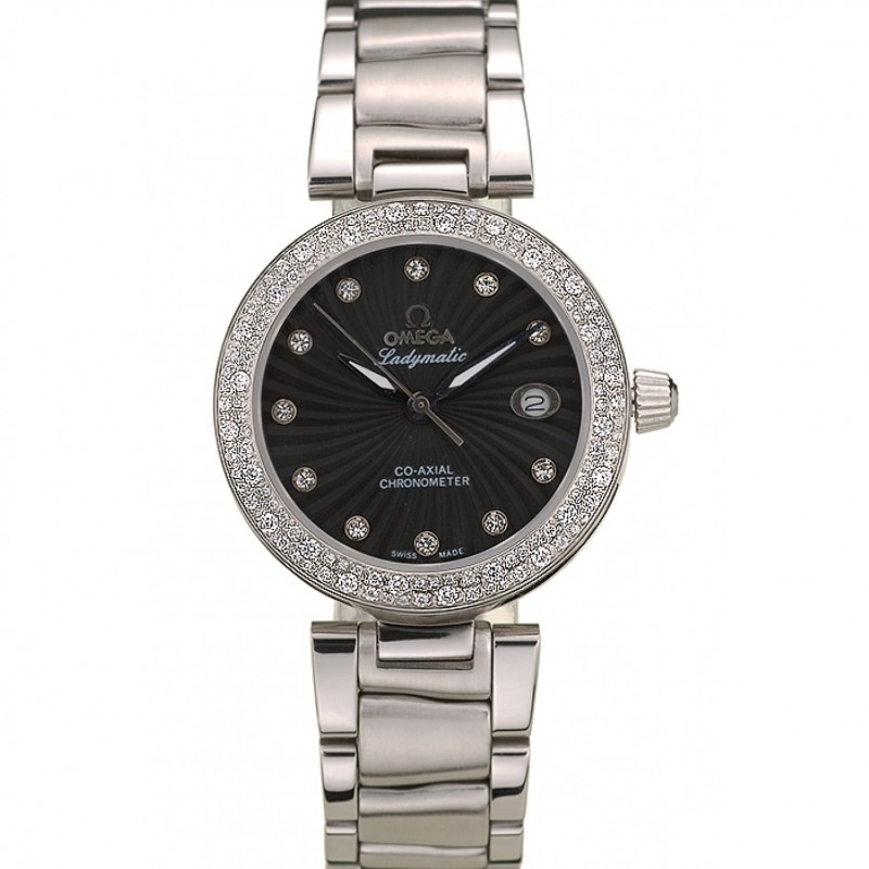 Lujo Réplicas Relojes Omega DeVille Ladymatic iamond marcación plateó la bandeja Negro