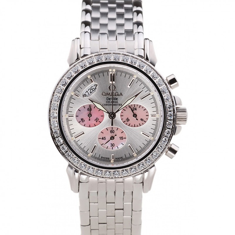 Omega DeVille Plata Bisel Con Esfera Gris y Brown correa de cuero 621567