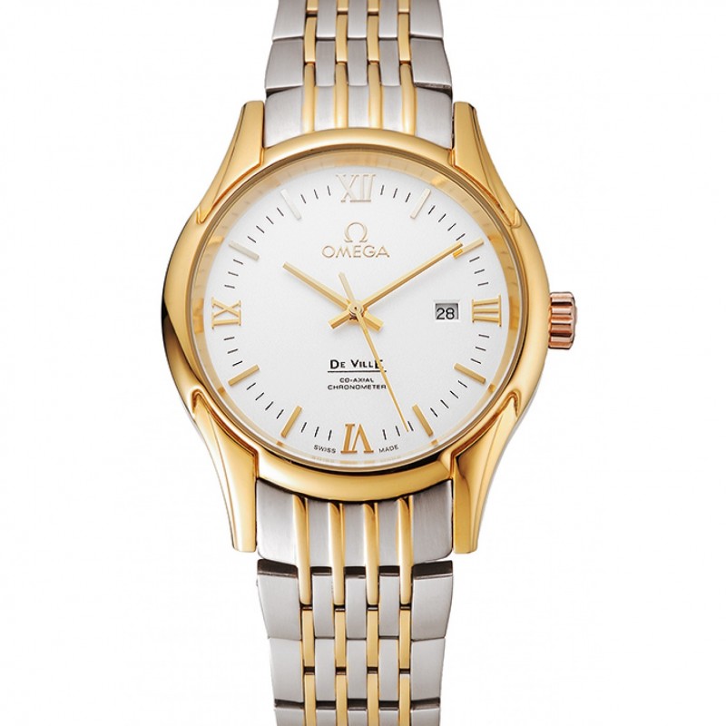 Omega De Ville Esfera Blanca Caja de oro brazalete de dos tonos 1453785