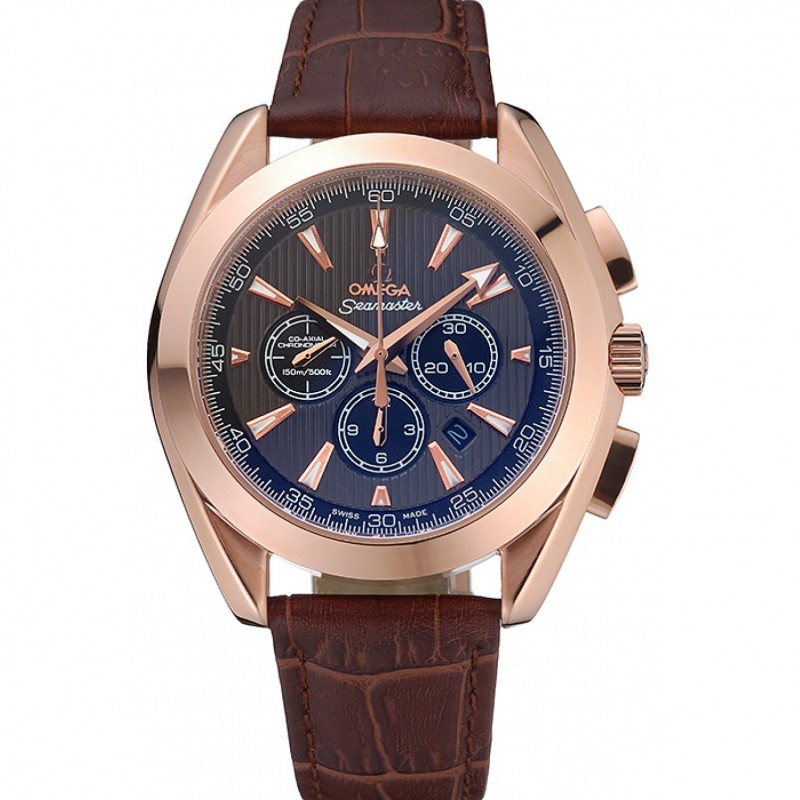 Mejor Omega Seamaster Aqua Terra cronógrafo teca-Negro Dial de cuero marrón pulsera 622531