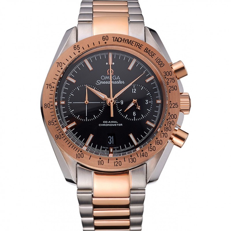 Omega Speedmaster Dial Negro Caja de acero inoxidable bisel de oro brazalete de dos tonos 622804