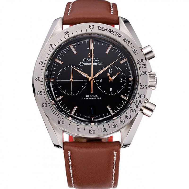 Omega Speedmaster Negro Dial Brown Caja de acero inoxidable Correa de cuero 622806