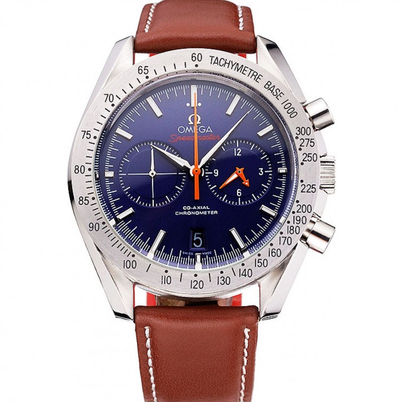 Alta calidad Réplicas Relojes Omega Speedmaster Esfera Azul Caja de acero inoxidable Correa de cuero marrón 622807