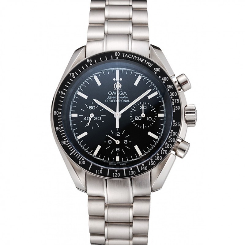 Alta calidad Réplicas Relojes Suizo Omega Speedmaster Professional Negro Dial Caja de acero inoxidable y pulsera
