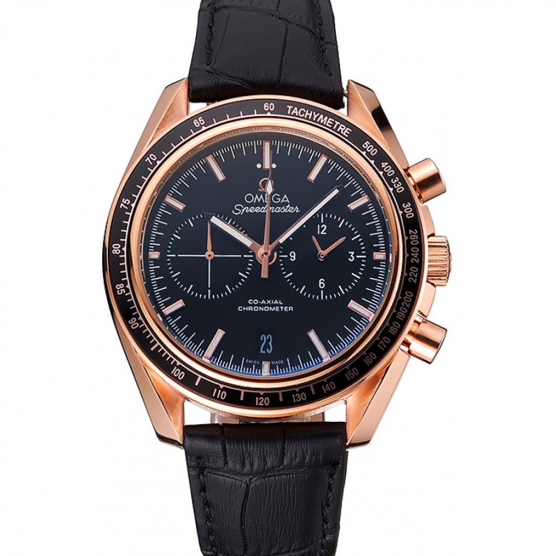 Omega Speedmaster Negro Dial Caso Negro Oro correa de cuero 622809