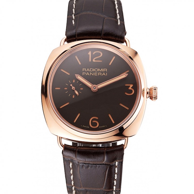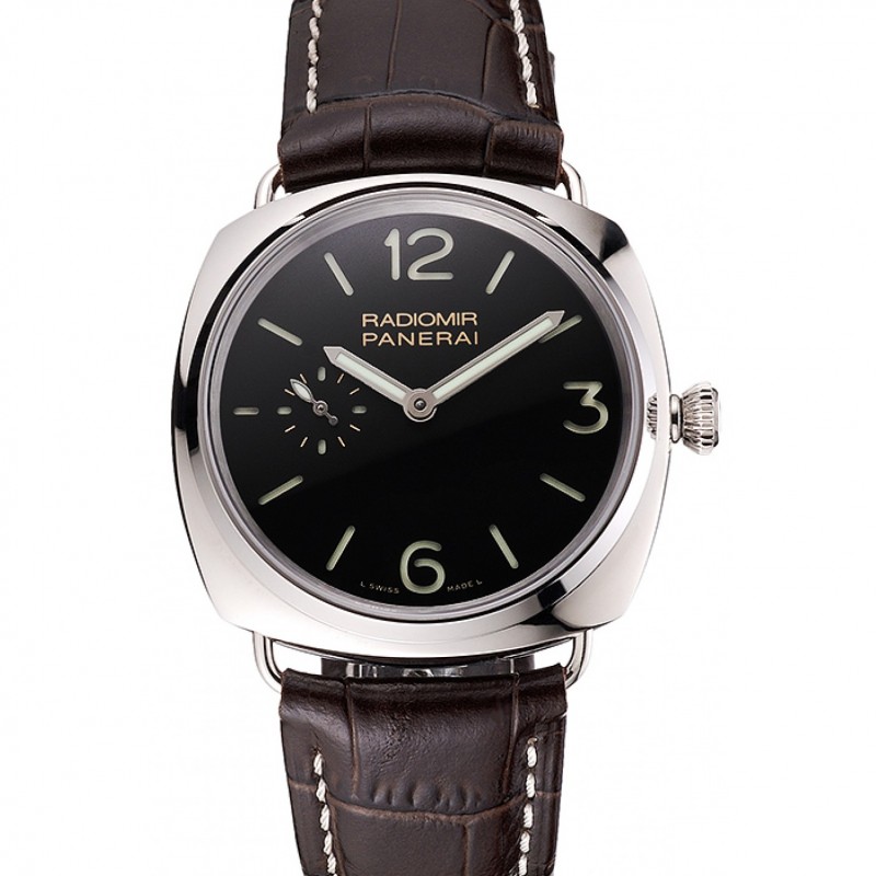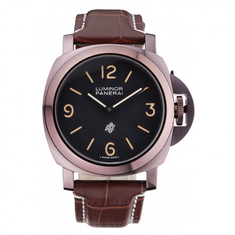 Suiza Panerai Negro Dial correa de cuero caja de acero inoxidable oscuro Marrón