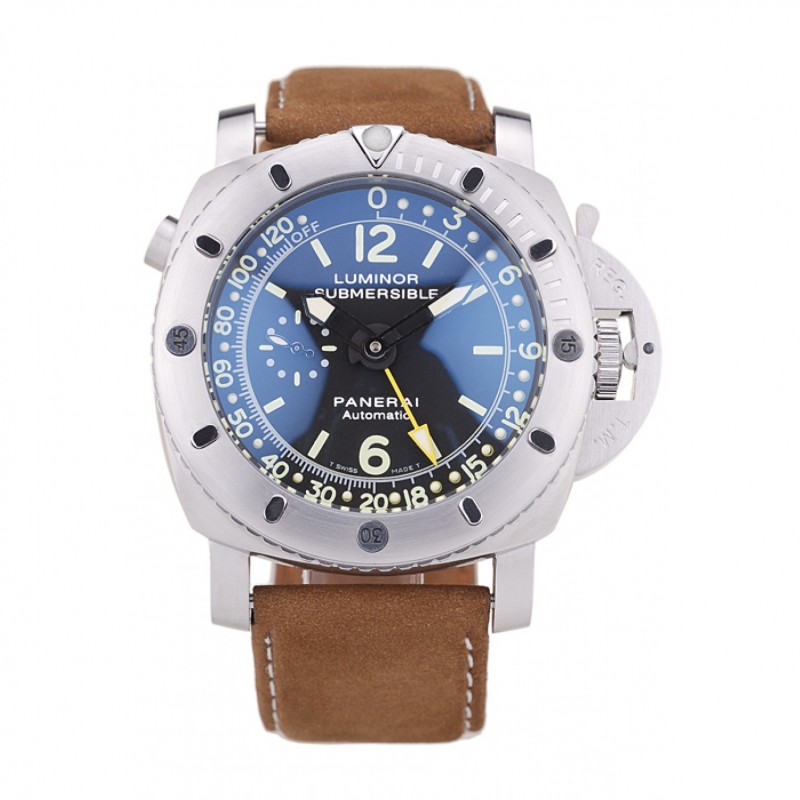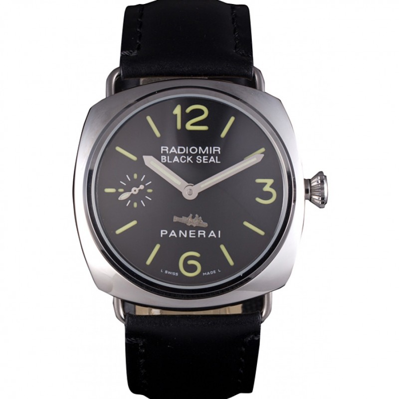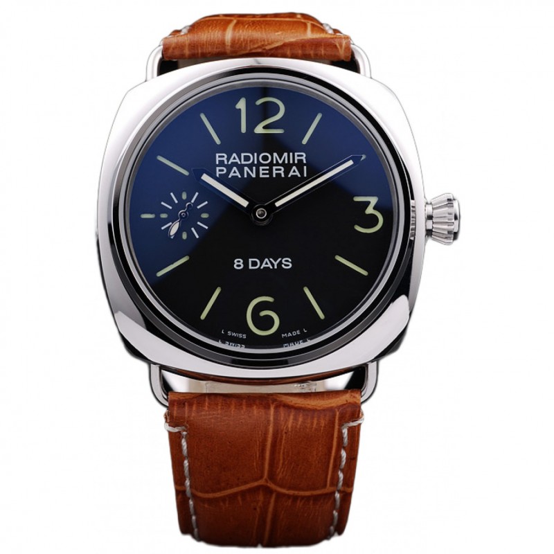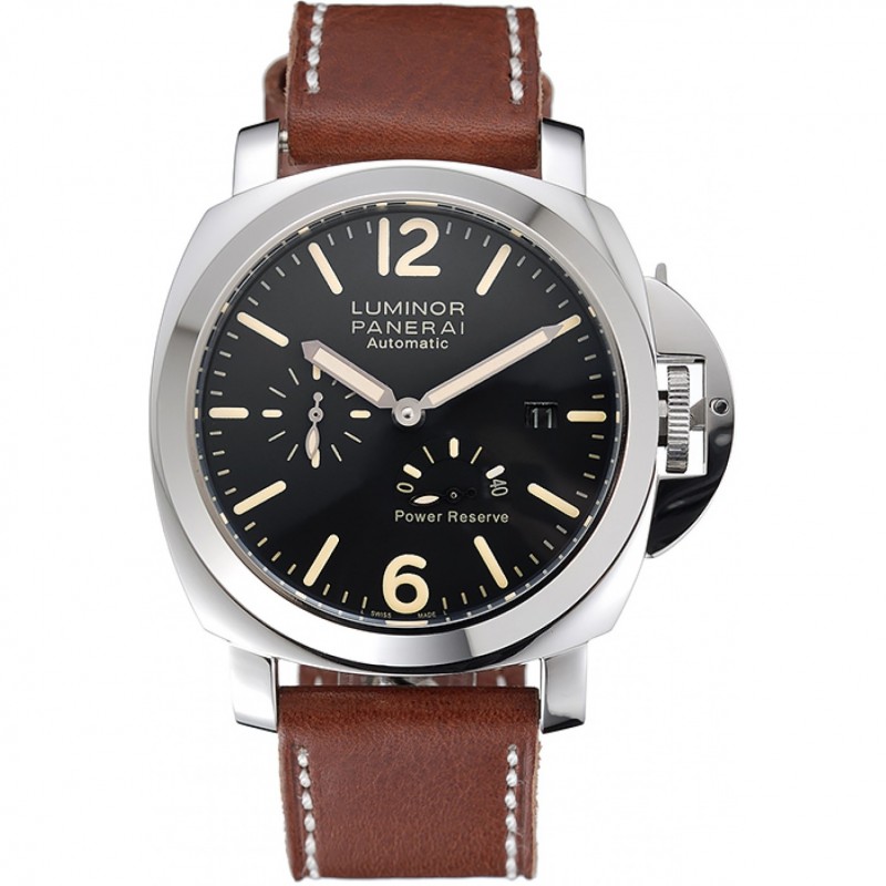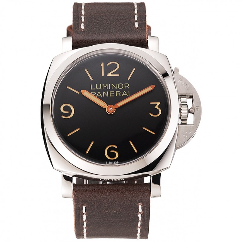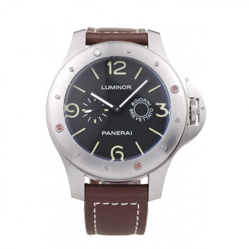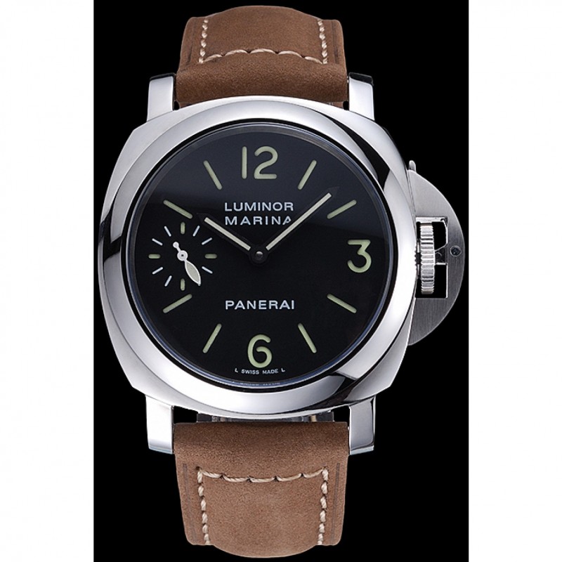 Panerai Luminor cepillado caja de acero inoxidable Negro Dial correa de cuero marrón oscuro