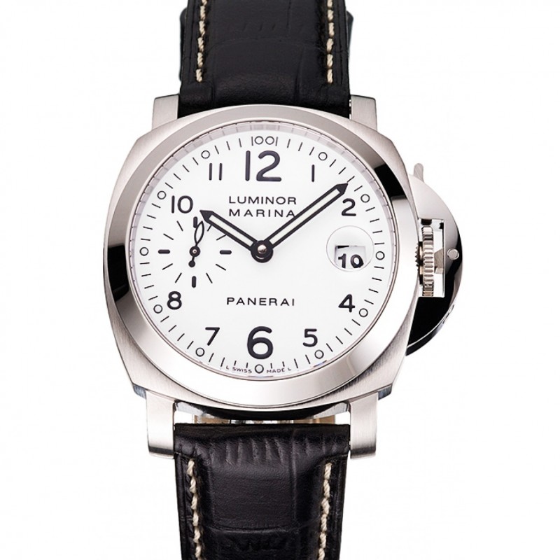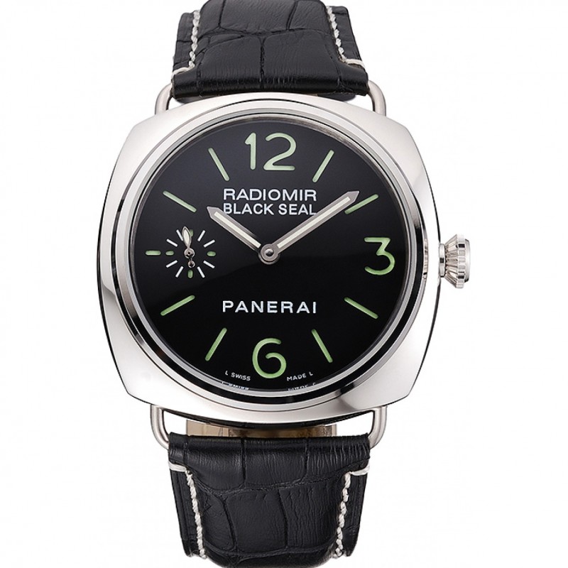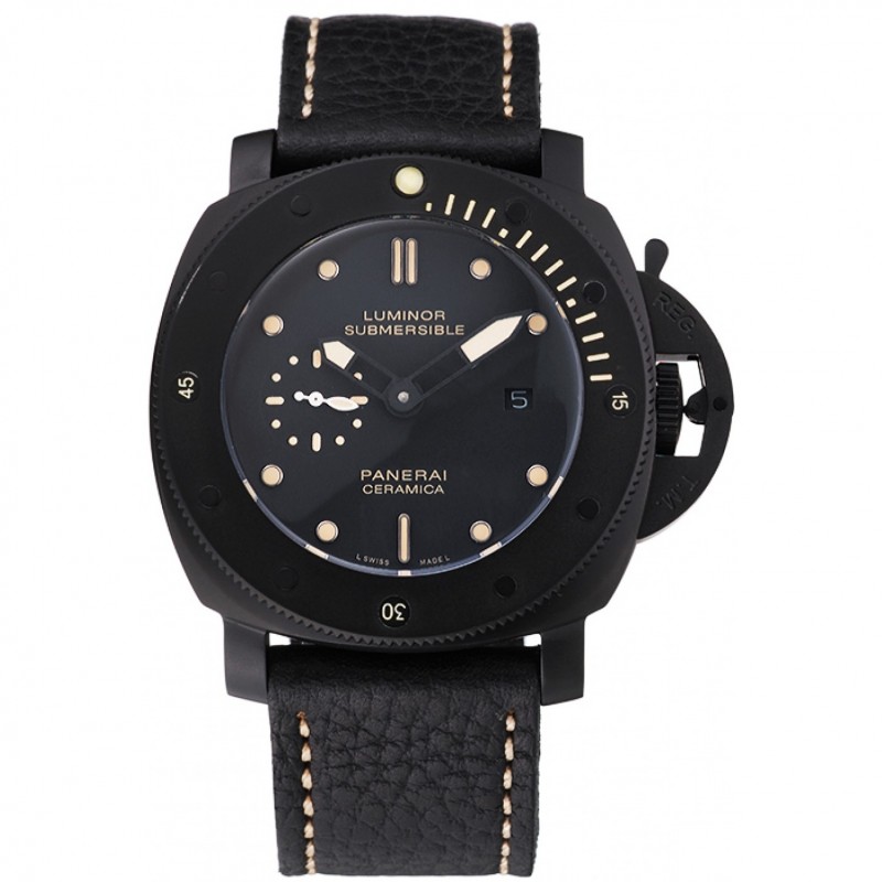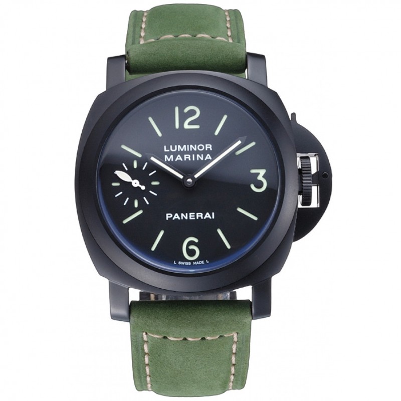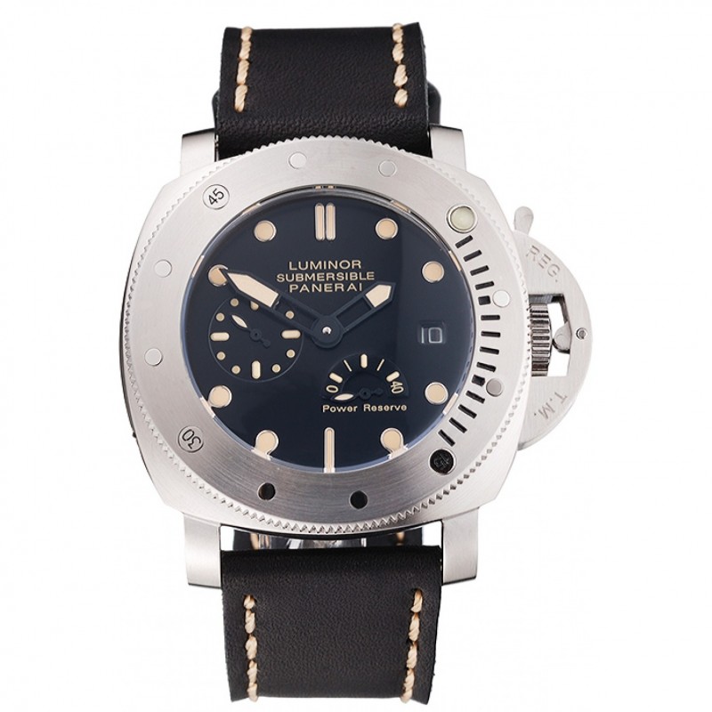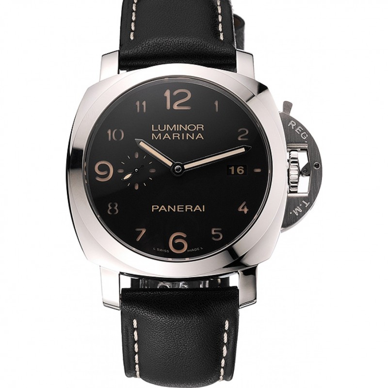 SS Réplicas Relojes Panerai Luminor sumergibles Negro Dial pulsera de cuero de gamuza