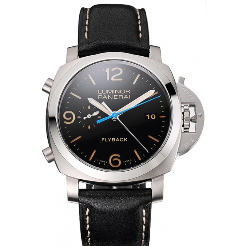 Suiza Panerai Luminor Flyback Cronógrafo Negro Dial correa de cuero caja de acero inoxidable Negro