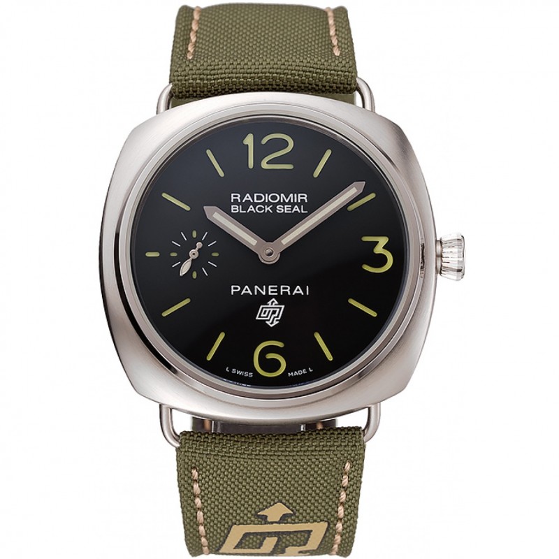 Sello Negro Radiomir Panerai Logo Acciaio Negro Dial pulsera verde 1454017