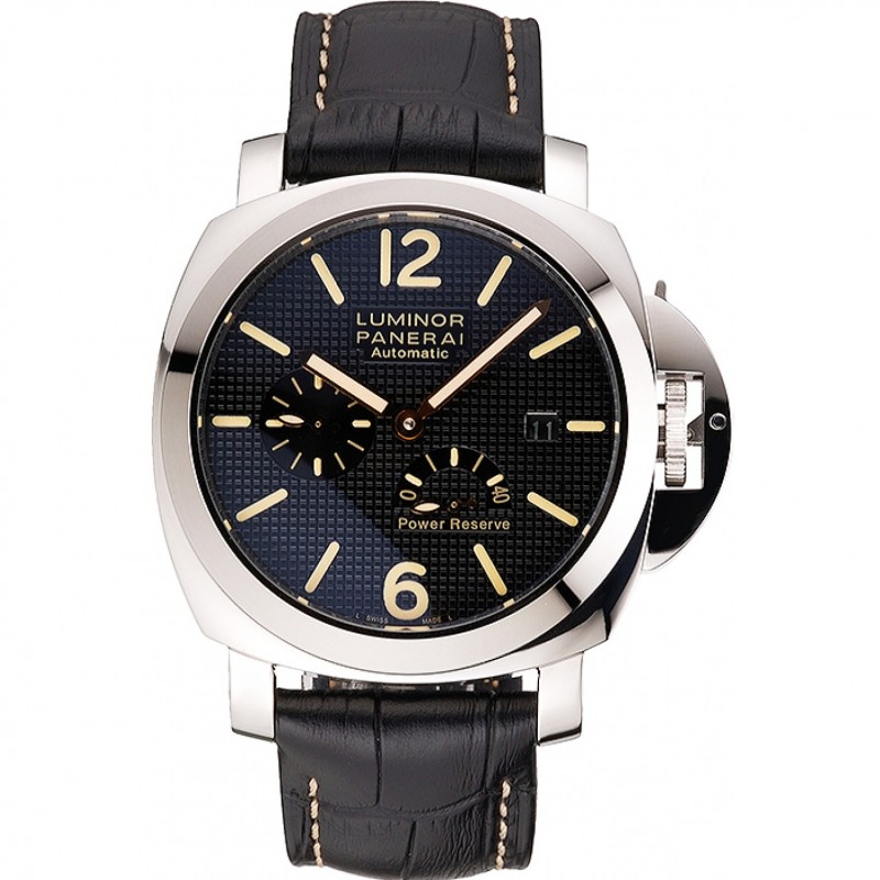 Panerai Luminor reserva de energía automático Negro Dial correa de cuero en relieve de caja de acero inoxidable Negro