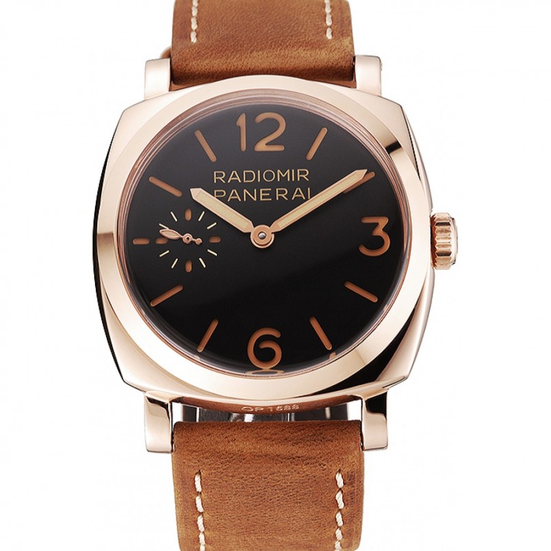 Suiza Panerai 1940 Negro Dial correa de cuero de la caja de oro rosa Gamuza marrón 1453844