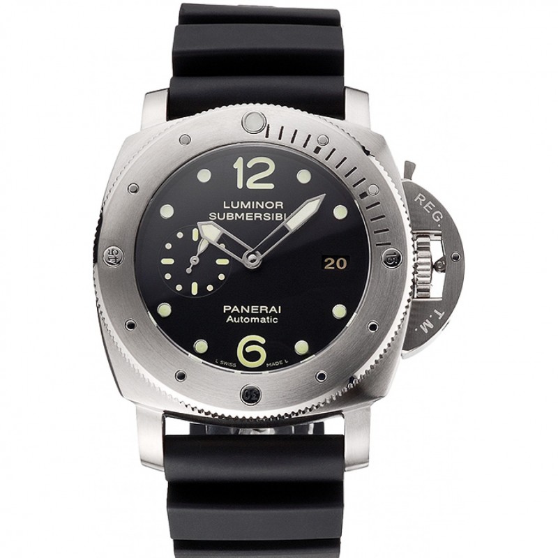 Suiza Panerai Luminor sumergibles Negro Dial Caja de acero inoxidable correa de caucho Negro