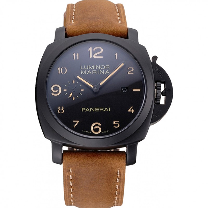 Gama alta Réplicas Relojes Piel Panerai Luminor Brown Correa Negro Dial 80160