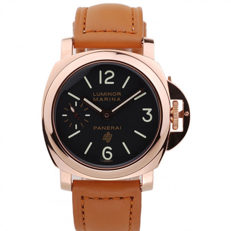 AAA Réplicas Relojes Panerai Rose Negro Caja Oro Dial correa de cuero marrón 98136