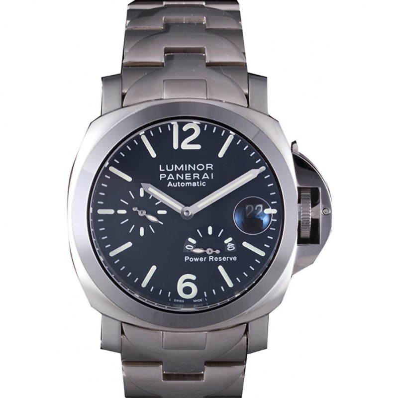 Panerai Luminor Power Reserve Negro Dial cepillado pulsera de acero inoxidable
