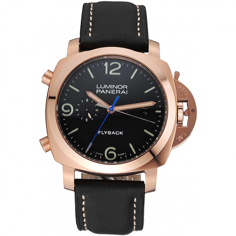Lujo Réplicas Relojes Panerai Luminor 1950 3 Días Chrono correa de cuero del tiempo de retorno Negro Dial Caja Oro Rosa Negro
